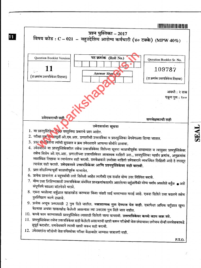 Click Here Answer Key. Download Arogya Vibhag Maharashtra MO Sample Papers for free of cost in. Arogya Sevak Question Paper Pdf 35 DOWNLOAD Mirror 1.